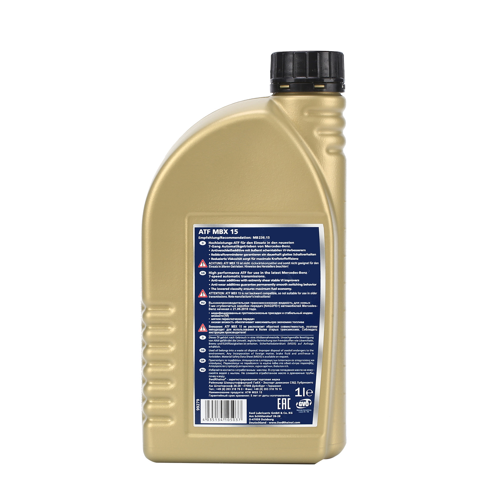 ATF MBX 15是一款特别适合奔驰7速自动变速箱(NAG-2FE+至21.06.2010),采用低粘度HC合成基础油而成。具有极佳的摩擦系统,能够确保最佳的换档状态,即使在高负荷状态下,都能保护整个系统合理运行。