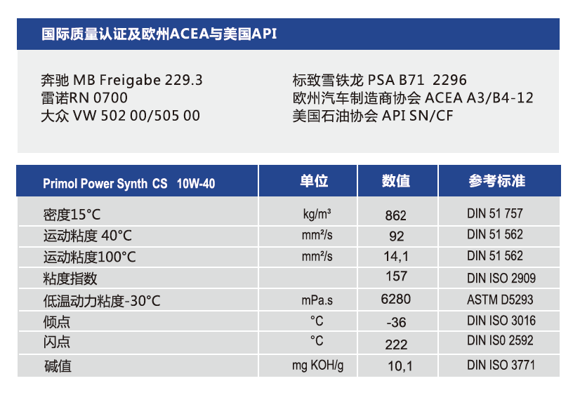 适用机油更换周期长和极端运行条件下的发动机。